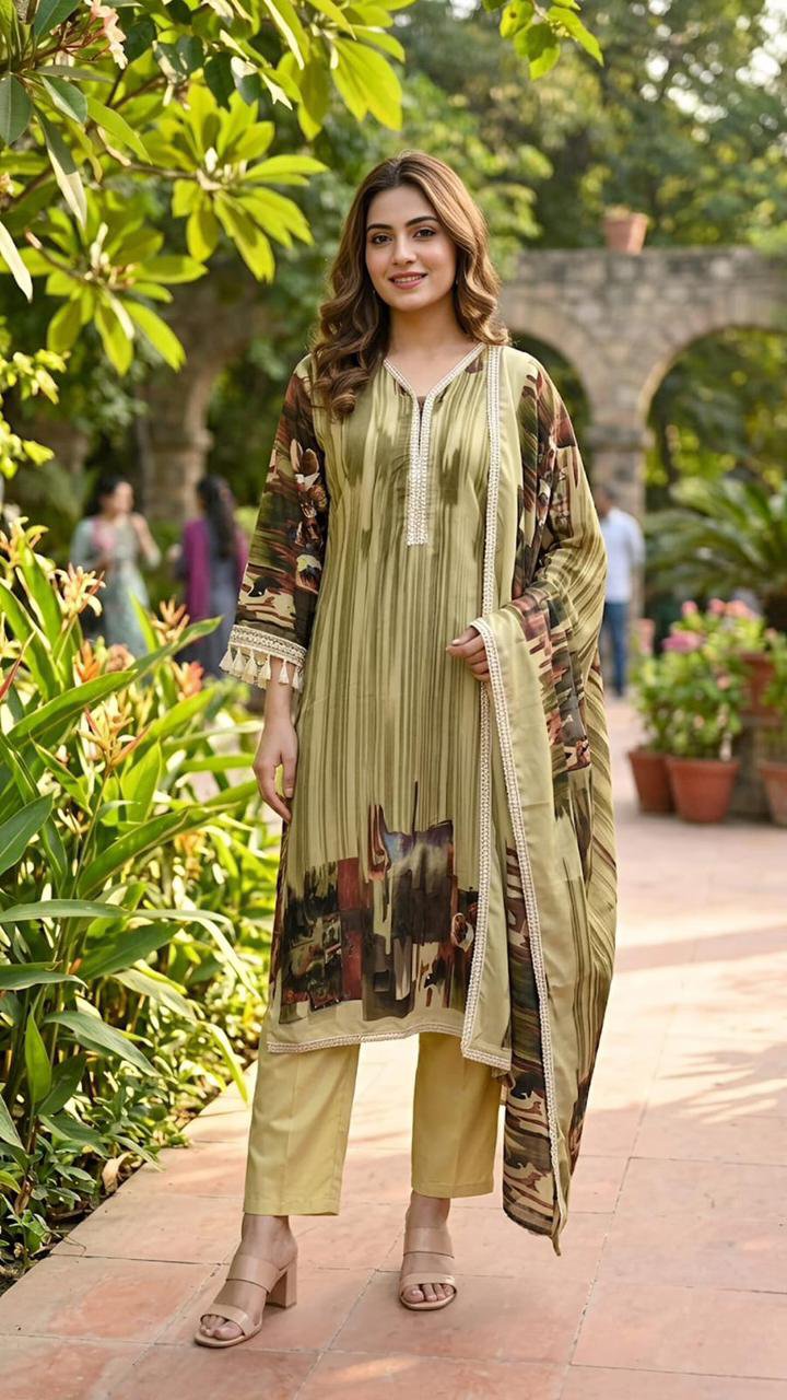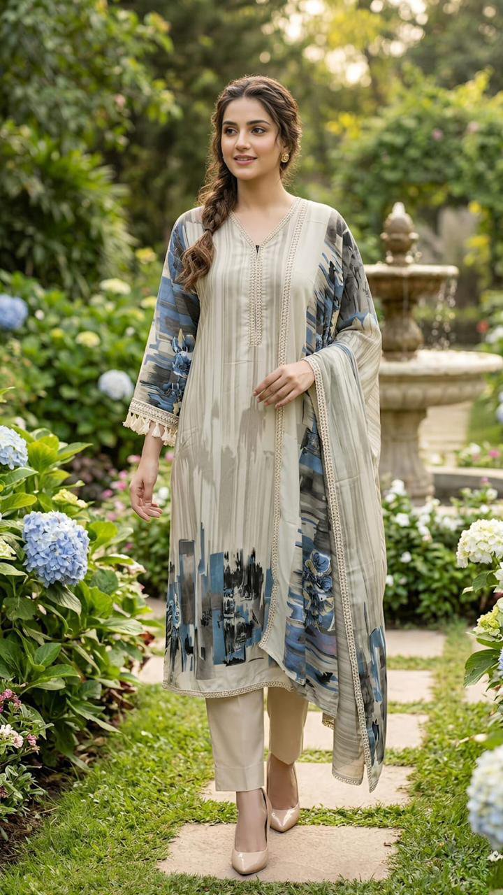 Graceful and refined, this kurta set features a soothing beige base with artistic blue floral prints for a soft,💙elegant appeal. Designed with a comfortable straight fit and paired with a matching dupatta✨, it offers effortless style and modest charm—perfect for casual outings,🌷festive gatherings, or daytime wear.🌿